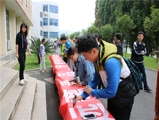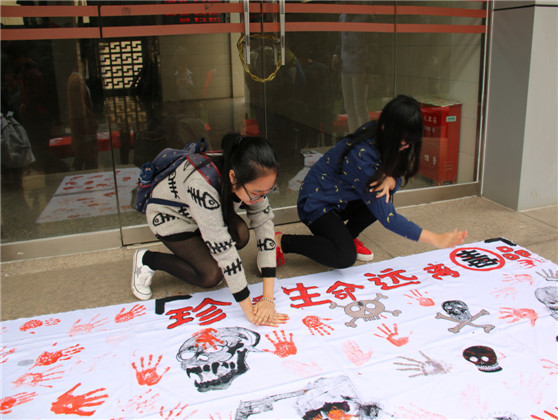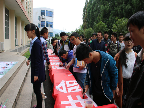 “珍爱生命,远离毒品”。日前,机电工程学院千名学生在上述学生自制的宣传海报上,郑重地摁下手印并在宣传横幅上写下自己的名字,向毒品说“不”。 为提高师生识别毒品、防范毒品和抵御毒品的能力,机电工程学院提出了“不种毒、不制毒、不贩毒、不吸毒”的倡议。活动现场,各类毒品的图片展示吸引了大批过往学生及行人的注意力,禁毒宣传展板上吸毒者因吸食毒品致身体溃烂、精神消沉的图片,及某涉毒明星吸毒前后的对比照片,也让很多人唏嘘不已。过往学生纷纷自觉地在宣传海报以及横幅上摁下手印并签下自己的名字。 据悉,机电工程学院结合“五个一”即参观一次禁毒展览,观看一部禁毒影片,举行一次禁毒主题教育,撰写一篇禁毒心得,开展一次线上禁毒宣传活动自发组织开展毒品预防教育。 此次宣传画及海报均由机电工程学院学生干部原创、手工制作而成,想通过师生喜闻乐见的宣传形式引起了全院师生对禁毒活动的关注,并用一系列鲜活的事例告诉学生们:“牢记历史使命,从我做起,以抵制毒品为荣,以吸毒贩毒为耻。”(机电工程学院 供稿) |