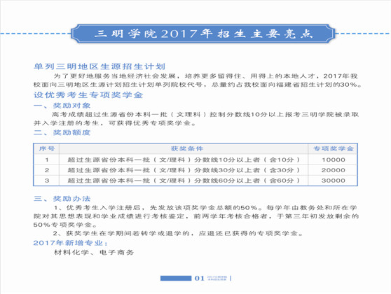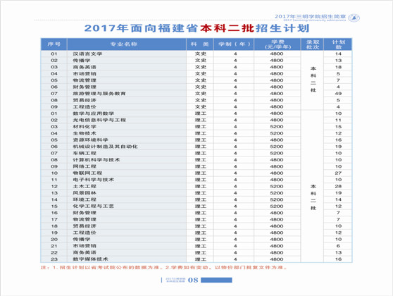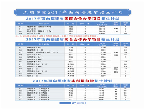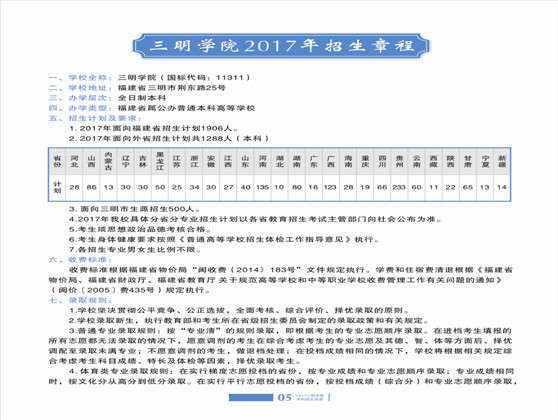 2017年三明学院本科招生简章