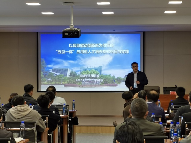 11月4-5日,2020年全国新建本科院校联席会议暨第二十次工作研讨会在潍坊科技学院召开。教育部高等教育司司长、教育部直属高校工作办公室主任吴岩,高等教育司副司长、教育部直属高校工作办公室副主任范海林,中国高等教育学会副会长兼秘书长姜恩来,全国新建本科院校联盟理事长、盐城师范学院党委书记戴斌荣,全国新建本科院校联盟名誉理事长韩宝平以及山东省相关领导出席会议。我校副校长张君诚应邀参加会议并在分论坛二作报告。