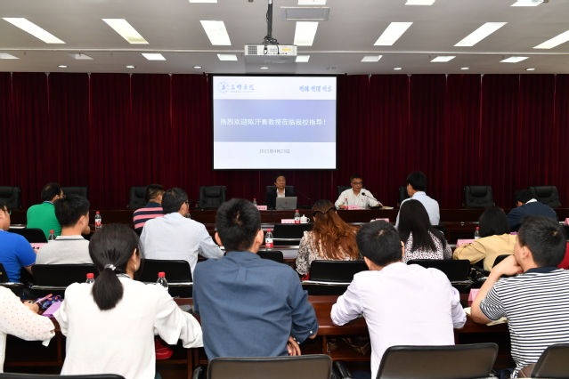 4月23日,武汉理工大学博士生导师陈汗青教授应邀在行政楼八楼会议室为我校教师作了题为“双一流目标下高校学科专业建设与发展研究”报告。报告会由副校长张君诚主持,一流专业、一流课程负责人及骨干教师代表参会。