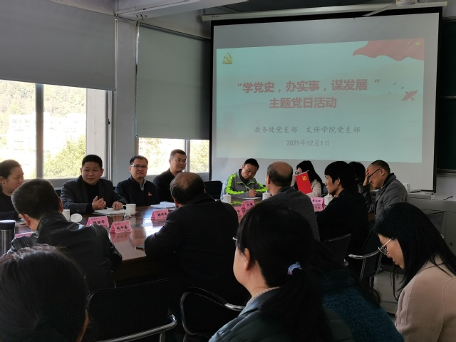 为扎实开展党史学习,切实践行“我为群众办实事”实践活动,深入了解一线教育教学工作情况,听取师生需求,提升服务质量,12月1日下午,教务处党支部与文化传播学院联合开展“学党史,办实事,谋发展”主题党日活动。