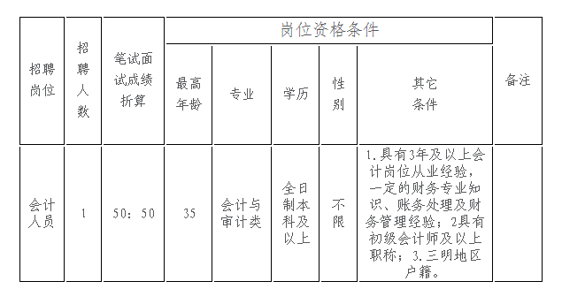招聘岗位:会计人员1名