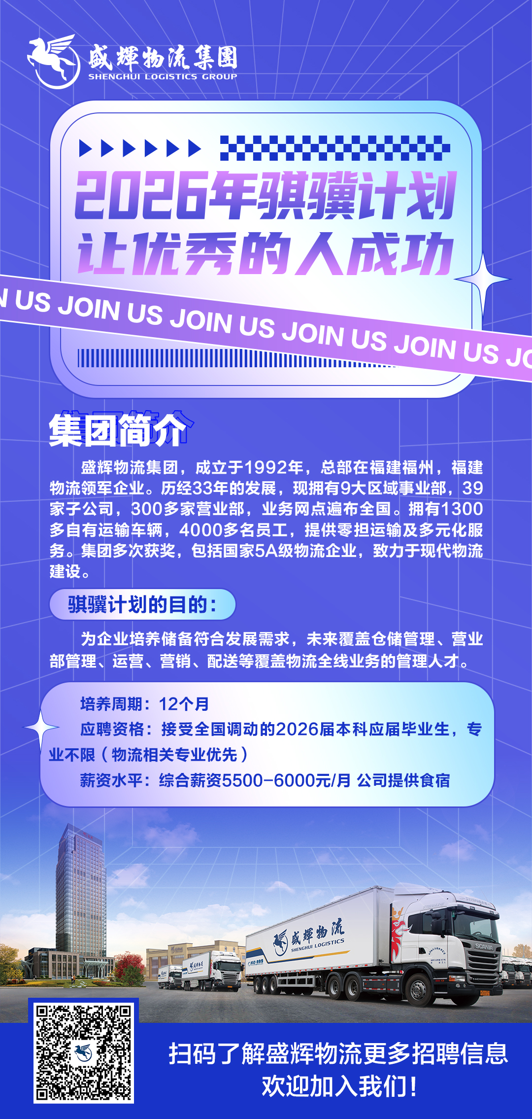 任职资格:2026届应届毕业生,统招全日制本科以上学历,专业不限;能接受全国范围内调动,试用期内在福州总部或广州分拨中心培养,转正定岗后在全国范围内调配(福建、江浙沪、广东等地)。