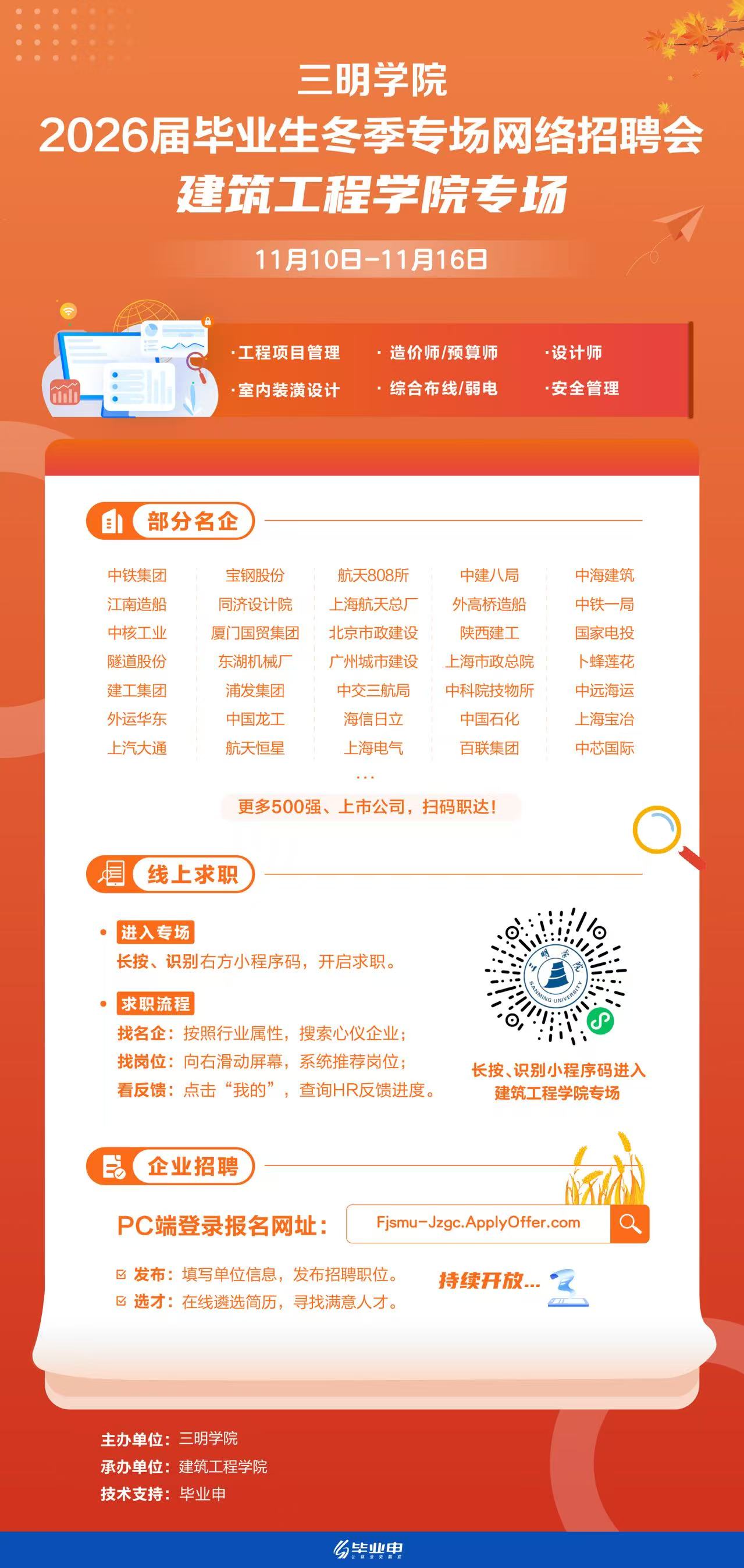 三明学院 2026届毕业生冬季专场网络招聘会建筑工程学院专场