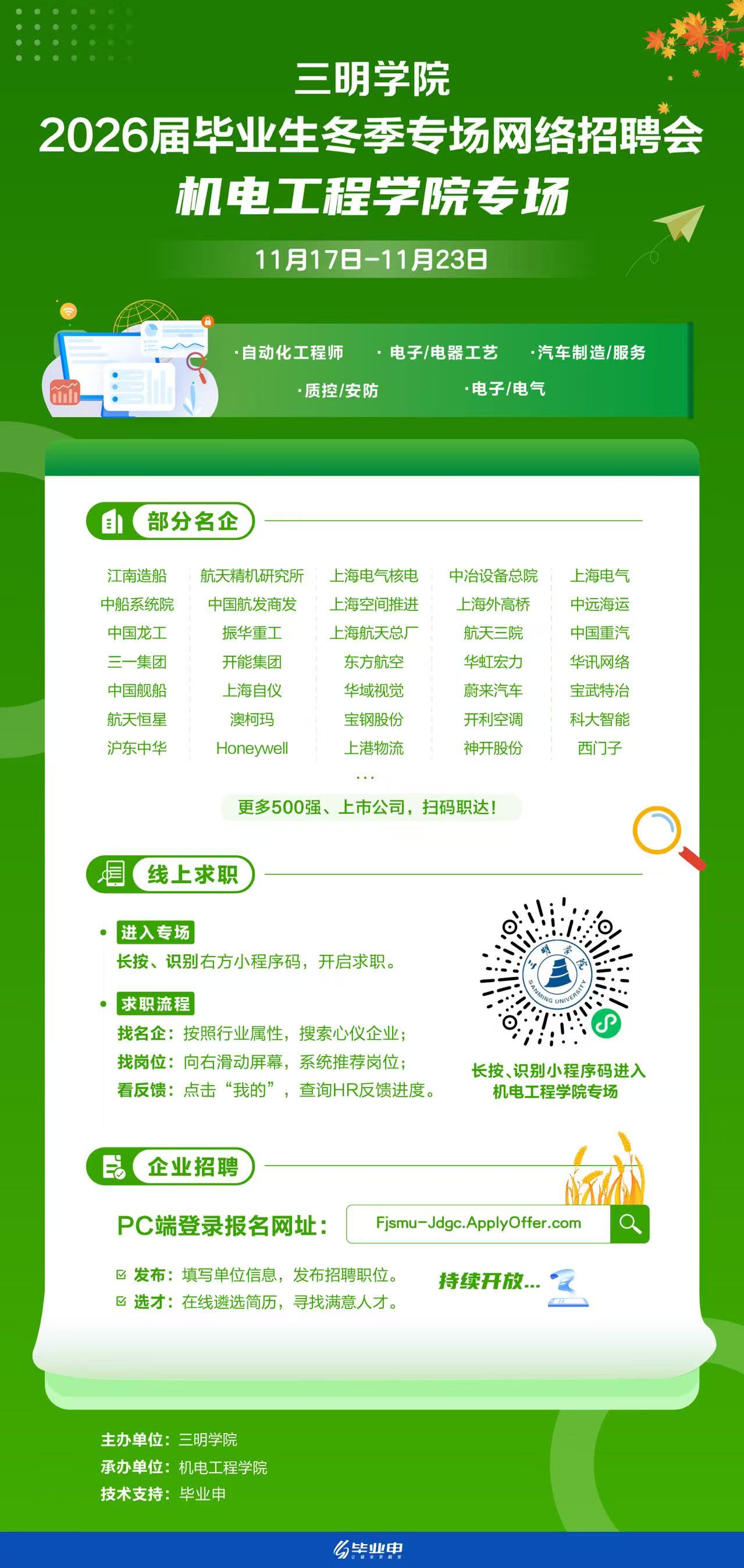 三明学院毕业生冬季专场招聘活动——机电工程学院专场