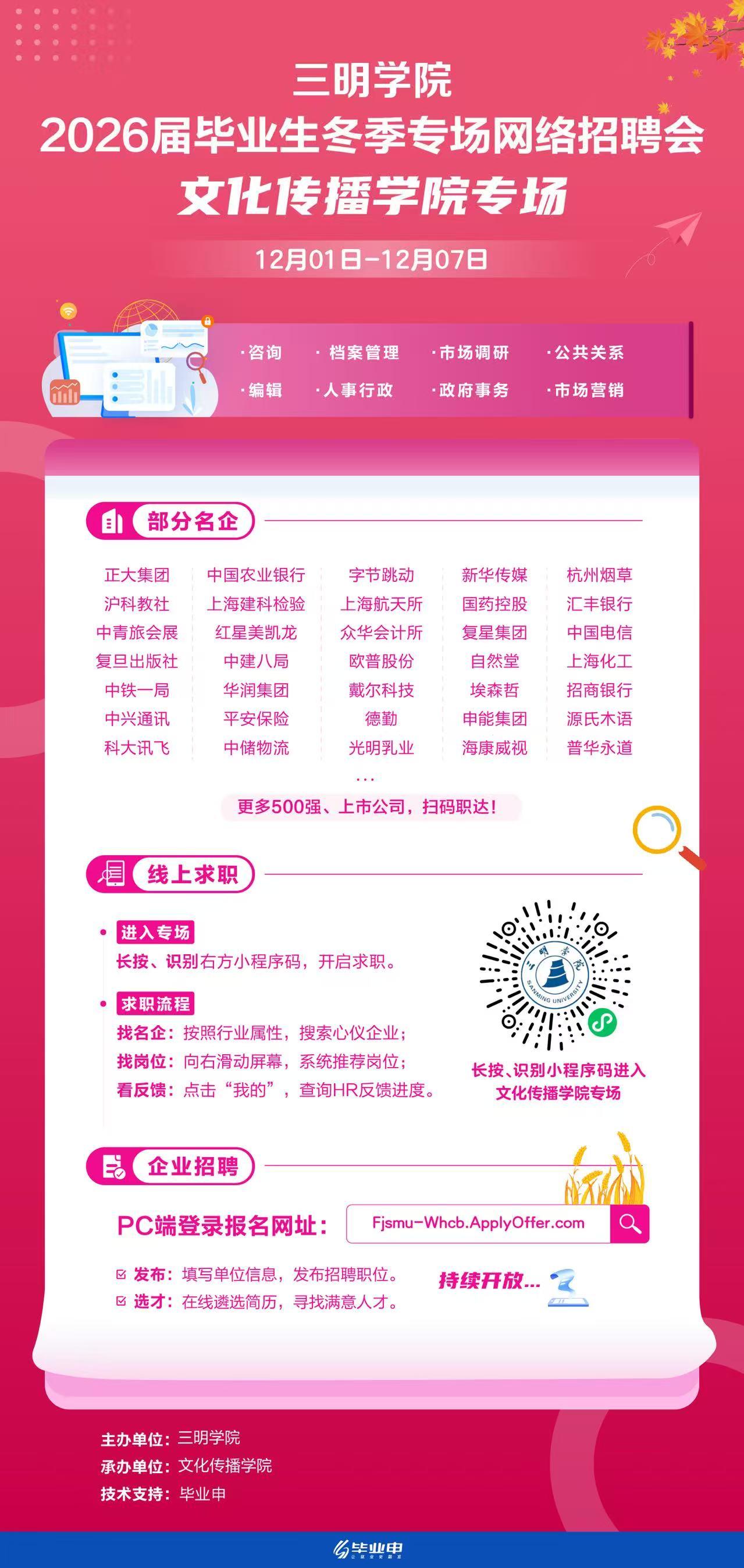 三明学院2026届毕业生冬季专场招聘会——文化传播学院专场
