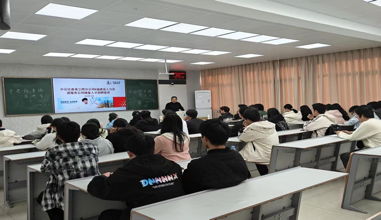 为拓宽学子就业渠道,帮助学生深入了解企业招聘需求、精准锚定优质岗位,12月10 日,中石化于三明学院博学楼310教室顺利开展专场宣讲会。本次宣讲会为校企双方搭建了高效沟通的平台,为毕业生对接优质就业资源提供了有力支持。