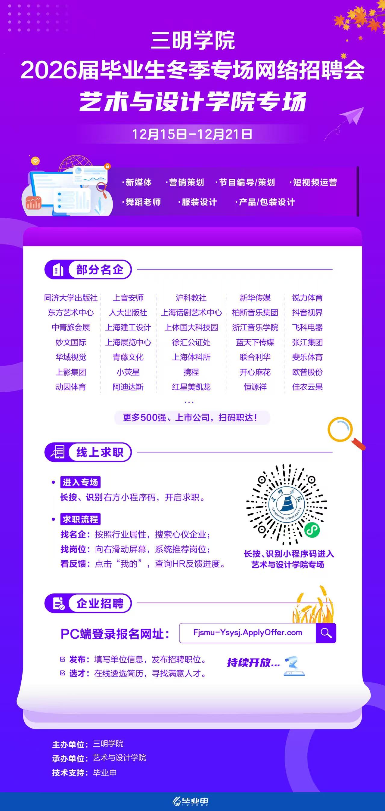 三明学院 2026届毕业生冬季专场网络招聘会——艺术与设计学院专场