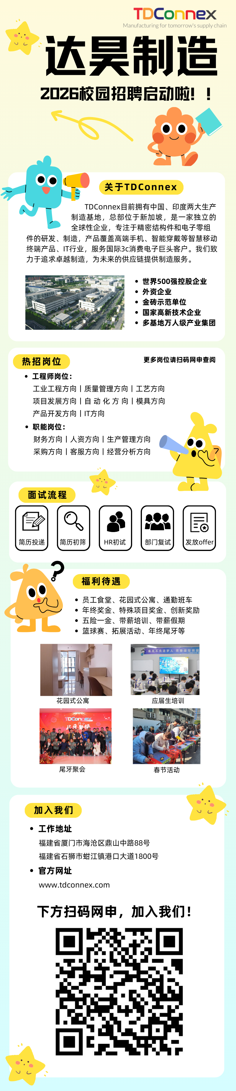 集团目前拥有中国、印度两大生产制造基地,总部位于新加坡,是一家全球性的企业;目前规模有1万余人,随着全球技术行业对更小、更轻、更智能化的产品的需求达到数十亿级别,TDConnex已做好充分准备,要帮助技术领导者创造并交付几乎全方位触及数字消费者和企业体验的技术产品。