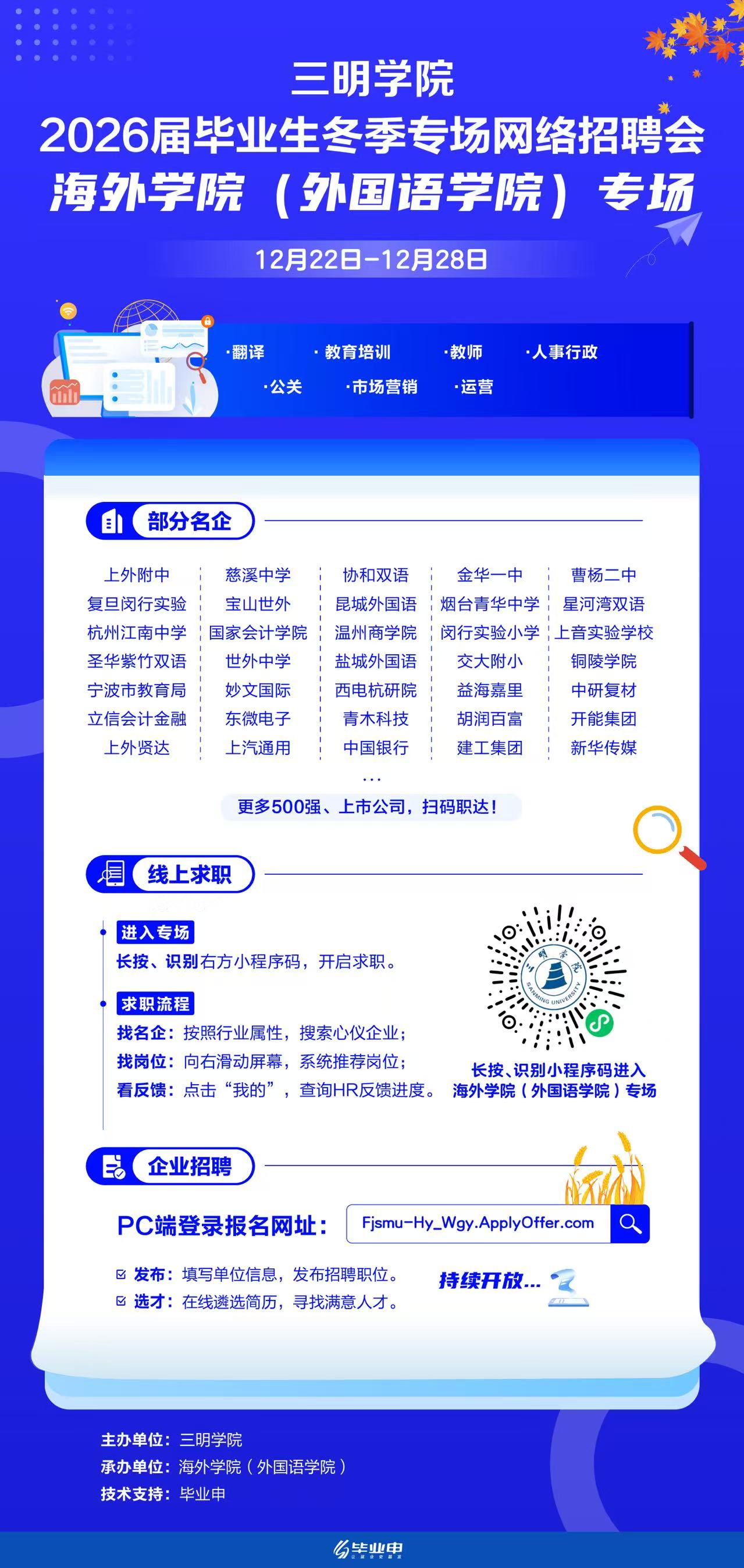 三明学院2026届毕业生冬季专场网络招聘会——海外学院(外国语学院)专场