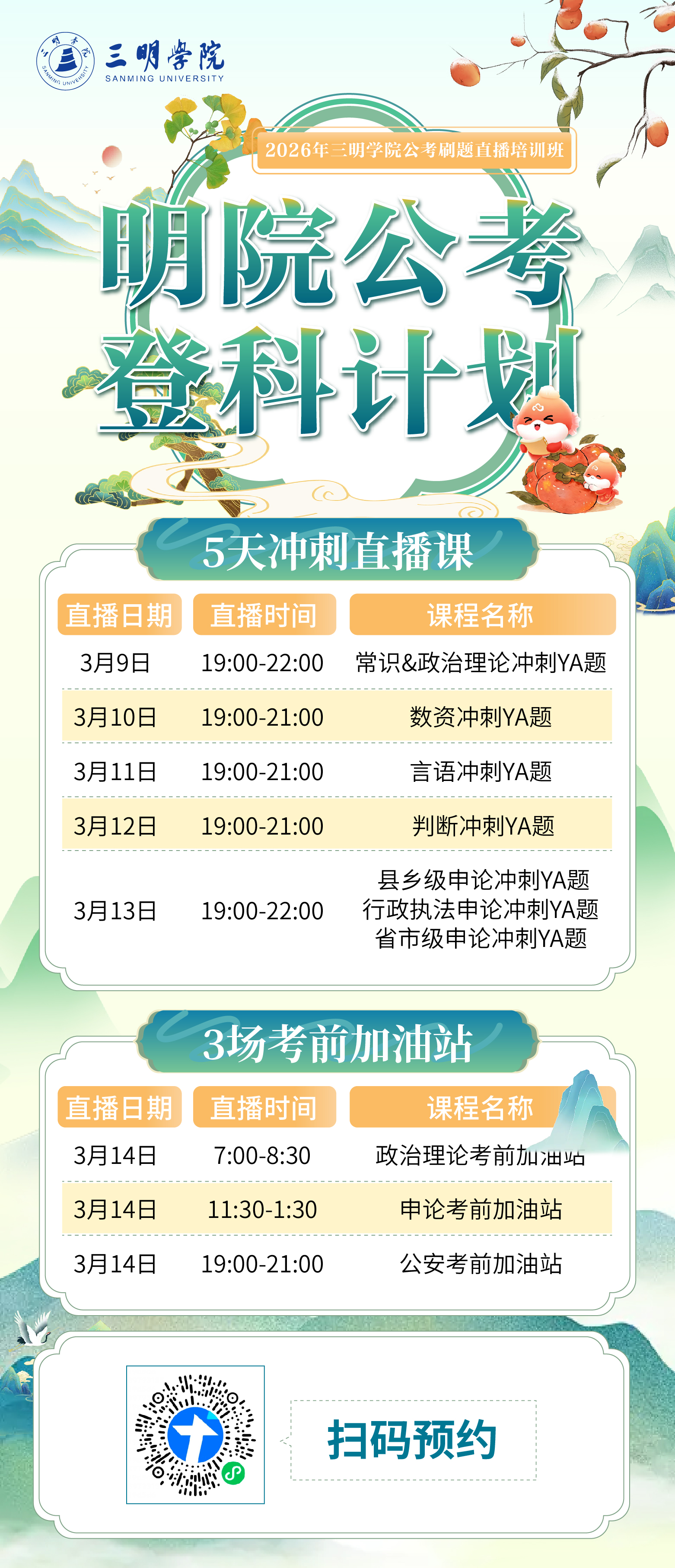 明院公考·登科计划——2026年三明学院公考刷题直播培训班