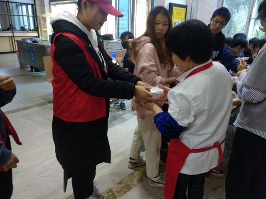 22日下午,志愿者将制作好的贺卡和热乎乎的汤圆一送到清洁工、舍管阿姨和食堂工作人员的手里,表达我院志愿者的关爱他人,温暖校园的暖人真情。