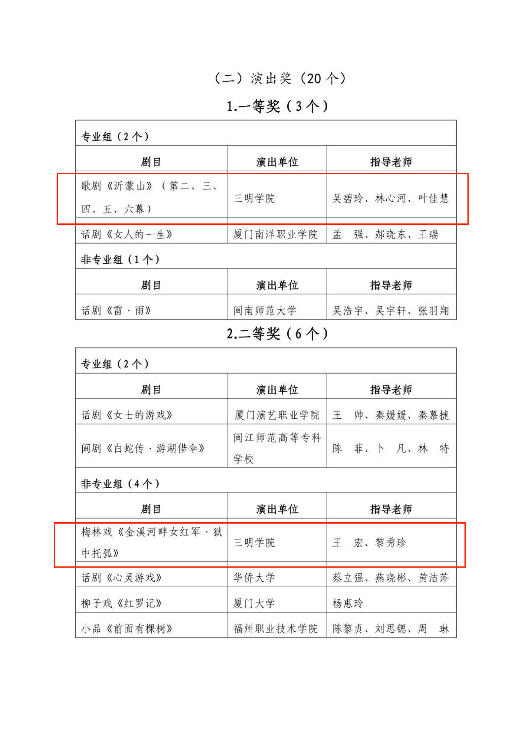 近日,由福建省文学艺术界联合会、福建省教育厅共同主办,福建省戏剧家协会承办的第六届福建省大学生戏剧节剧目展演评审工作圆满结束。三明学院在本届戏剧节中表现突出,选送的多个剧目与个人斩获重要奖项,学校荣获“优秀组织奖”,充分展现了三明学院在艺术教育与人才培养方面的扎实功底与丰硕成果。