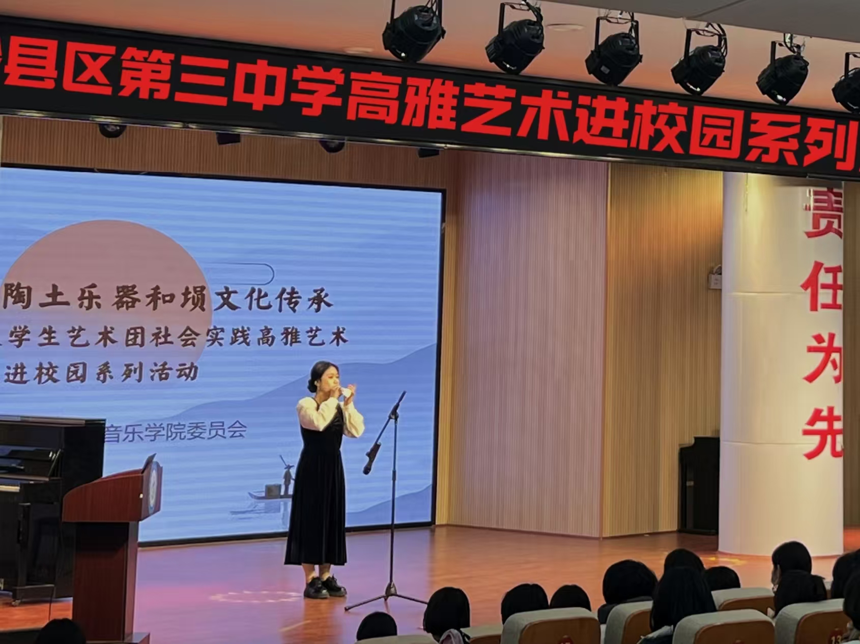 此次高雅艺术进校园活动不仅为沙县三中的师生带来丰富的文化体验,也促进了三明学院与沙县第三中学之间的校际合作。双方共同探索了传统音乐文化在高等教育和基础教育中一体化传承的新路径,为推动地方教育事业高质量发展贡献了力量。展望未来,三明学院大学生艺术团陶韵社将持续开展传统音乐文化的交流活动,扎根三明市红色基地,深入更多学校和社区,传承和弘扬中华优秀传统文化,让更多人了解和喜爱陶笛与埙等传统乐器。