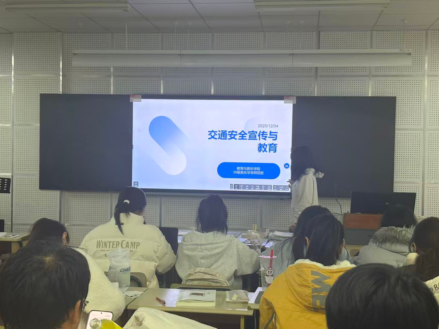 为强化新生交通安全意识,培养文明出行习惯,筑牢校园及周边交通安全防线,三明学院教育与音乐学院于2025年12月开展“文明出行守规则,安全护航伴青春”交通安全主题活动。活动以班级为单位开展系列宣传教育活动,覆盖一千余人次,取得了良好的安全教育成效。