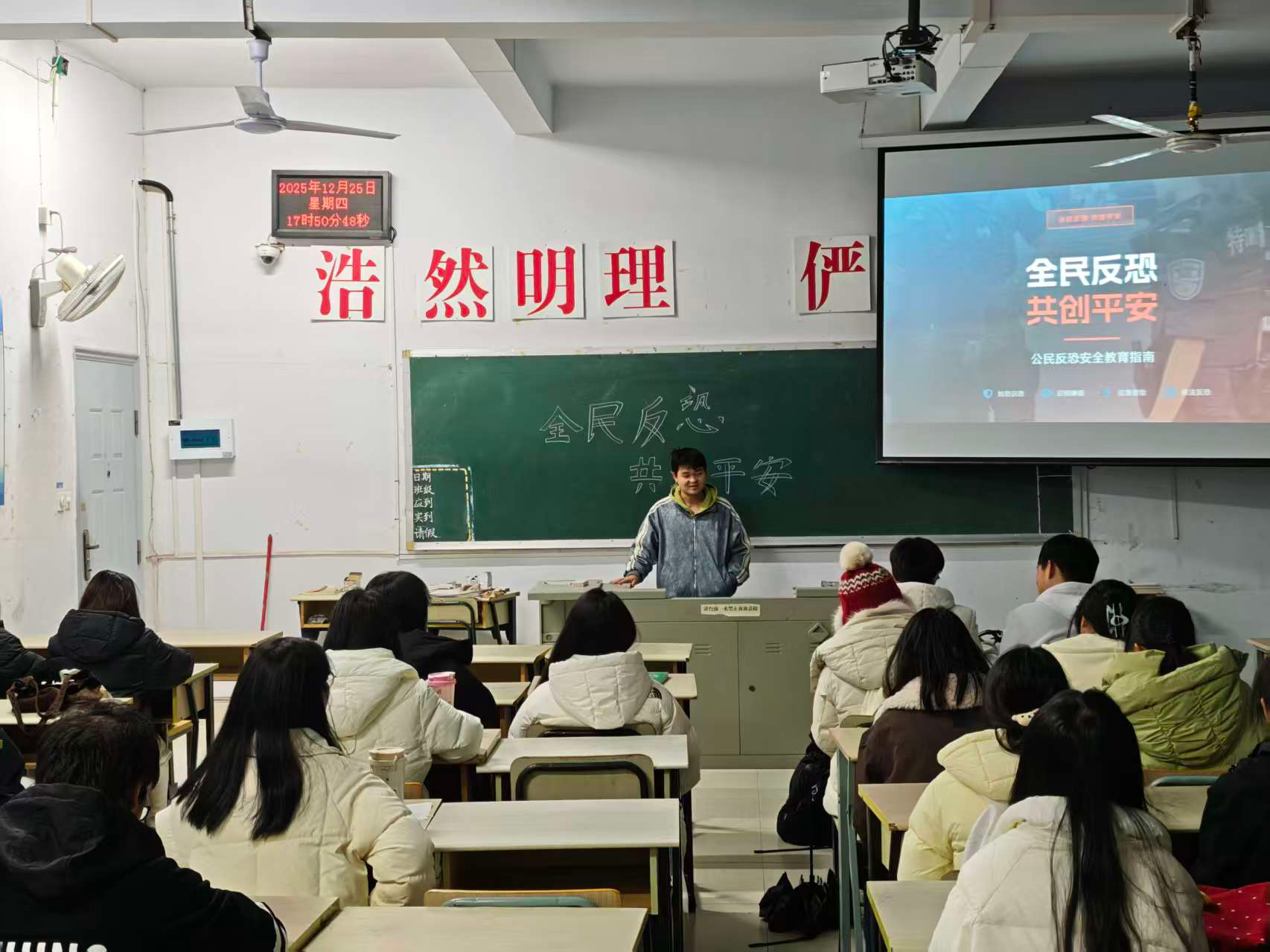 本次活动线下以专题讲座为主要形式,学院邀请公安系统相关专家莅临指导,围绕恐怖活动的常见类型、识别方法、防范技巧及应急处置流程等内容展开讲解。讲座中,专家结合典型案例,深入浅出地剖析了反恐防恐工作的重要性,现场演示了突发情况下的避险逃生、自救互救方法,进一步提升师生的应急反应能力。同时,学院通过张贴宣传海报、发放宣传手册等形式,营造浓厚的反恐宣传氛围。