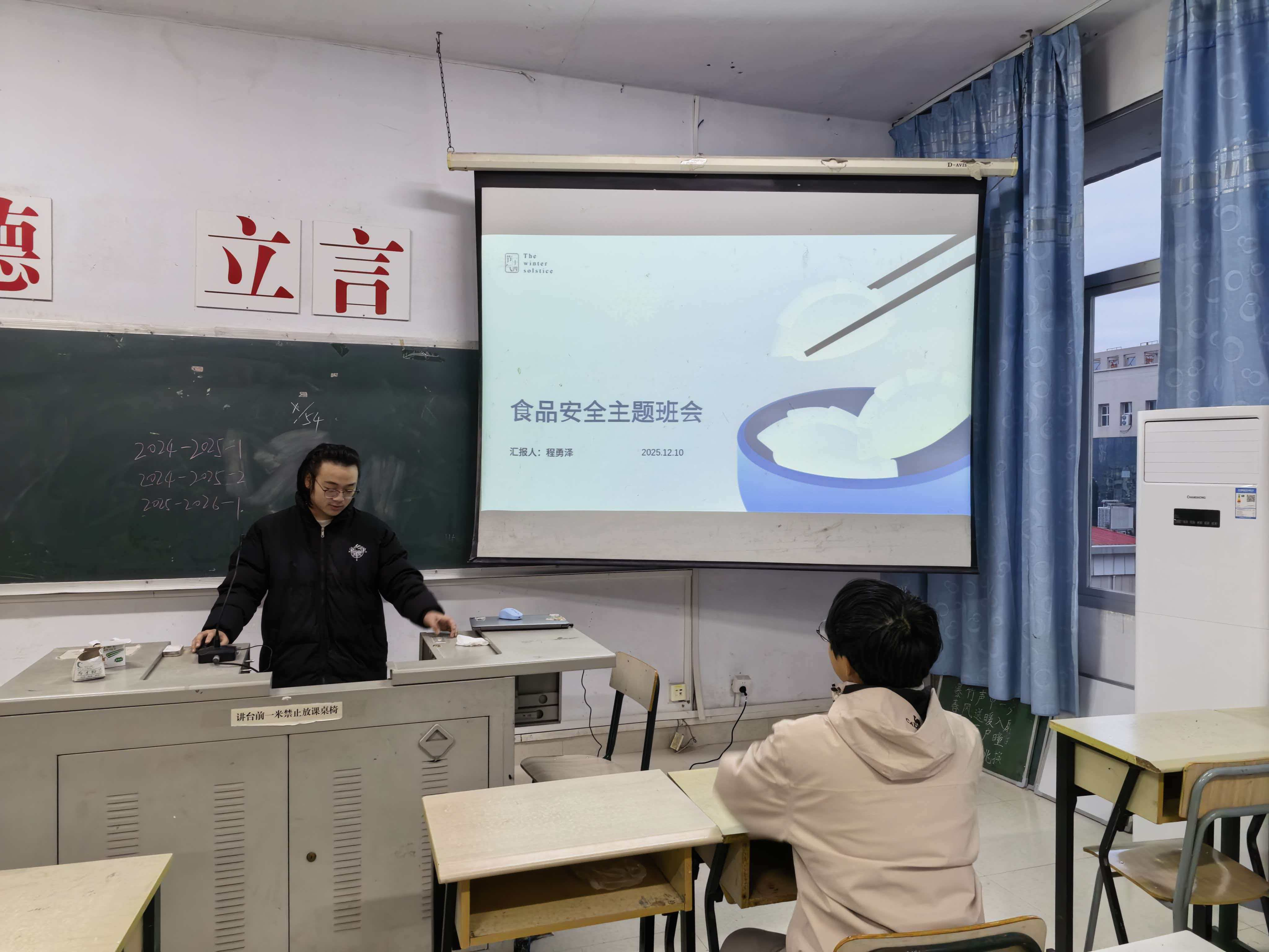 班会现场,结合冬季饮食特点,通过图文展示、案例分析、视频讲解等多种形式,系统讲解食品安全知识。从“三无食品”“过期食品”的辨别技巧,到路边摊、油炸小吃的潜在健康风险;从食材清洗、餐具消毒的正确方法,到暴饮暴食、生冷饮食的危害,班主任的讲解细致入微,让学生们对食品安全有了全面且深刻的认识。