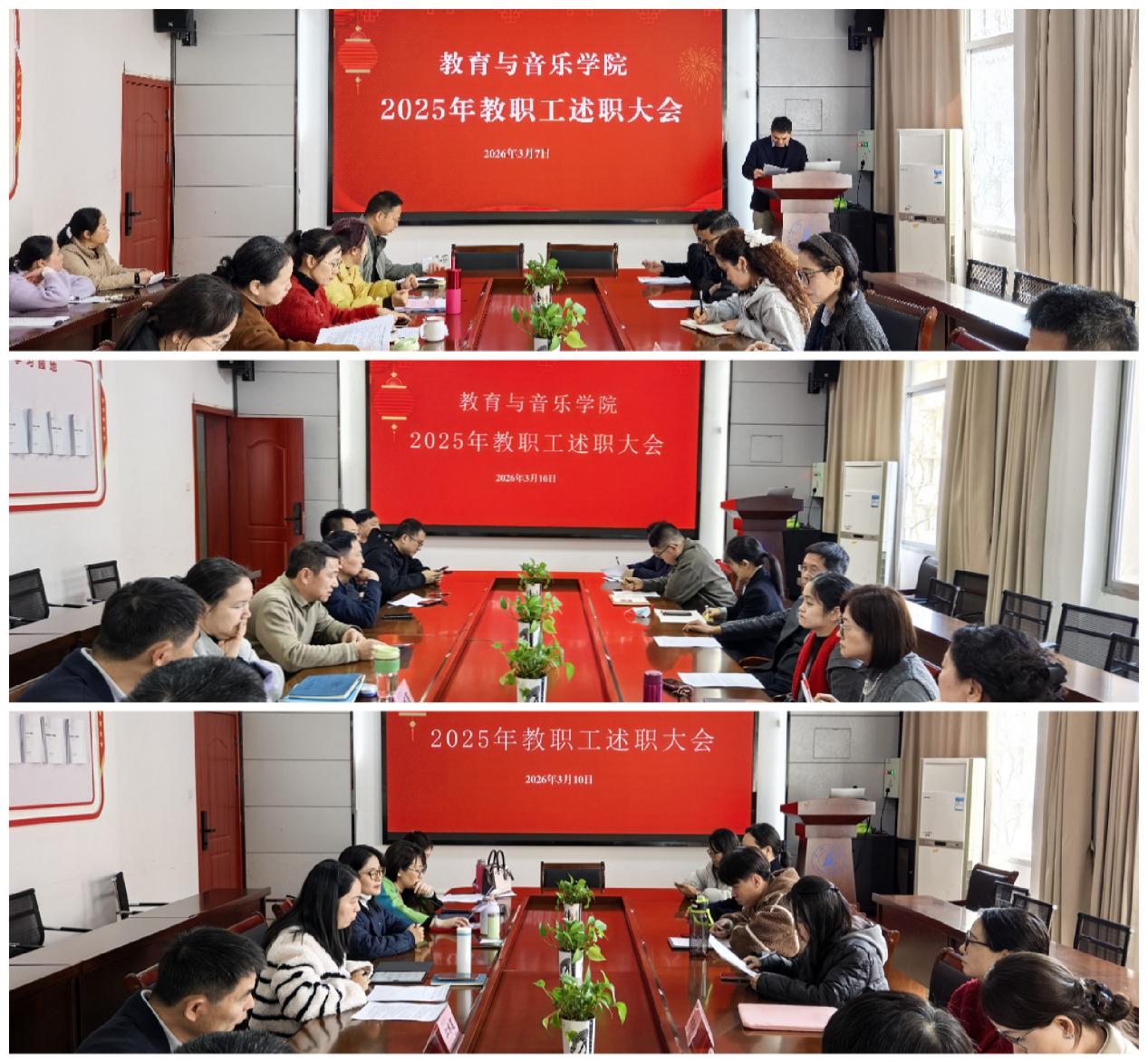 为全面总结2025年度工作成效,进一步压实岗位责任,近日,教育与音乐学院组织召开2025年度教职工述职评议会。学院联系校领导、校党委副书记李莉星莅会指导。
