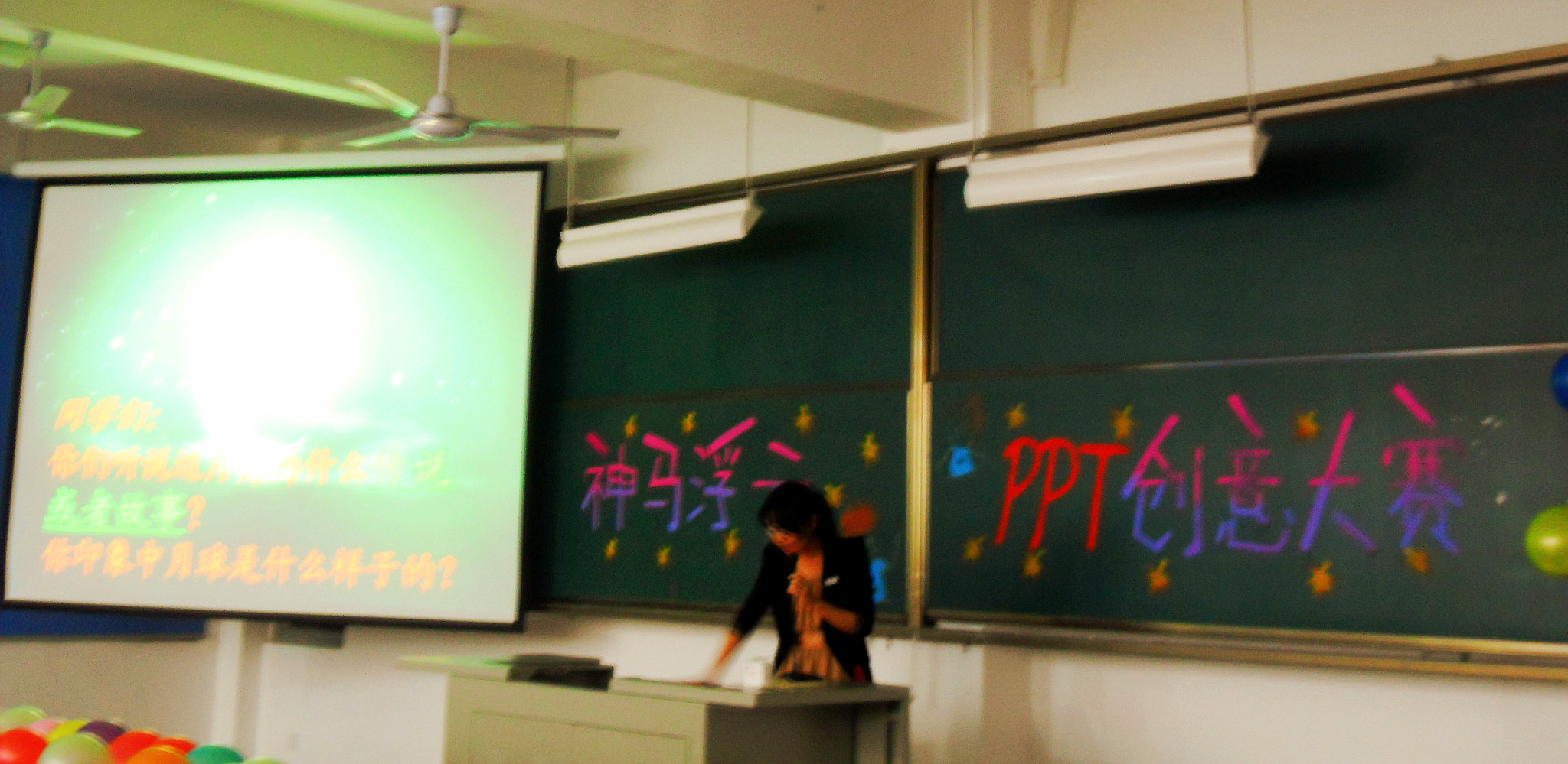 比赛流程是选手先进行自我介绍,接着向观众展示并讲解事先精心准备的PPT作品,活动PPT限定主题是与我系专业有关,因此二十多位选手大多展示的是自制简短大学课件和小学生上课课件。选手们的PPT作品精彩纷呈,在简单清晰的自我介绍之后,PPT讲解都是各有特色,轻重点不一。有的突出字体美观,有的突出背景色彩,有的突出内容效果等等。活动最后,曾念强主任对此次比赛做出了的点评,他肯定了大家的辛苦准备和技术上的表现,也真挚的鼓舞大家积极参与活动,将在我系的所学所获用于实践。来自11专升本2班的陈春婷在比赛中表现突出,以92分的高分摘下桂冠。