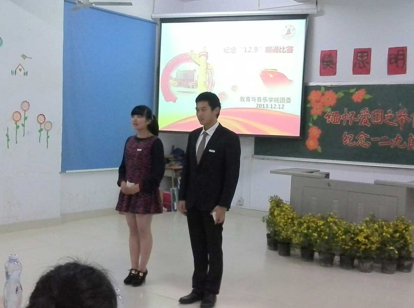 为纪念“一二・九”爱国运动78周年,弘扬和培育民族精神,激发广大青年学生的爱国情感,日前,教育与音乐学院开展了一系列纪念活动。