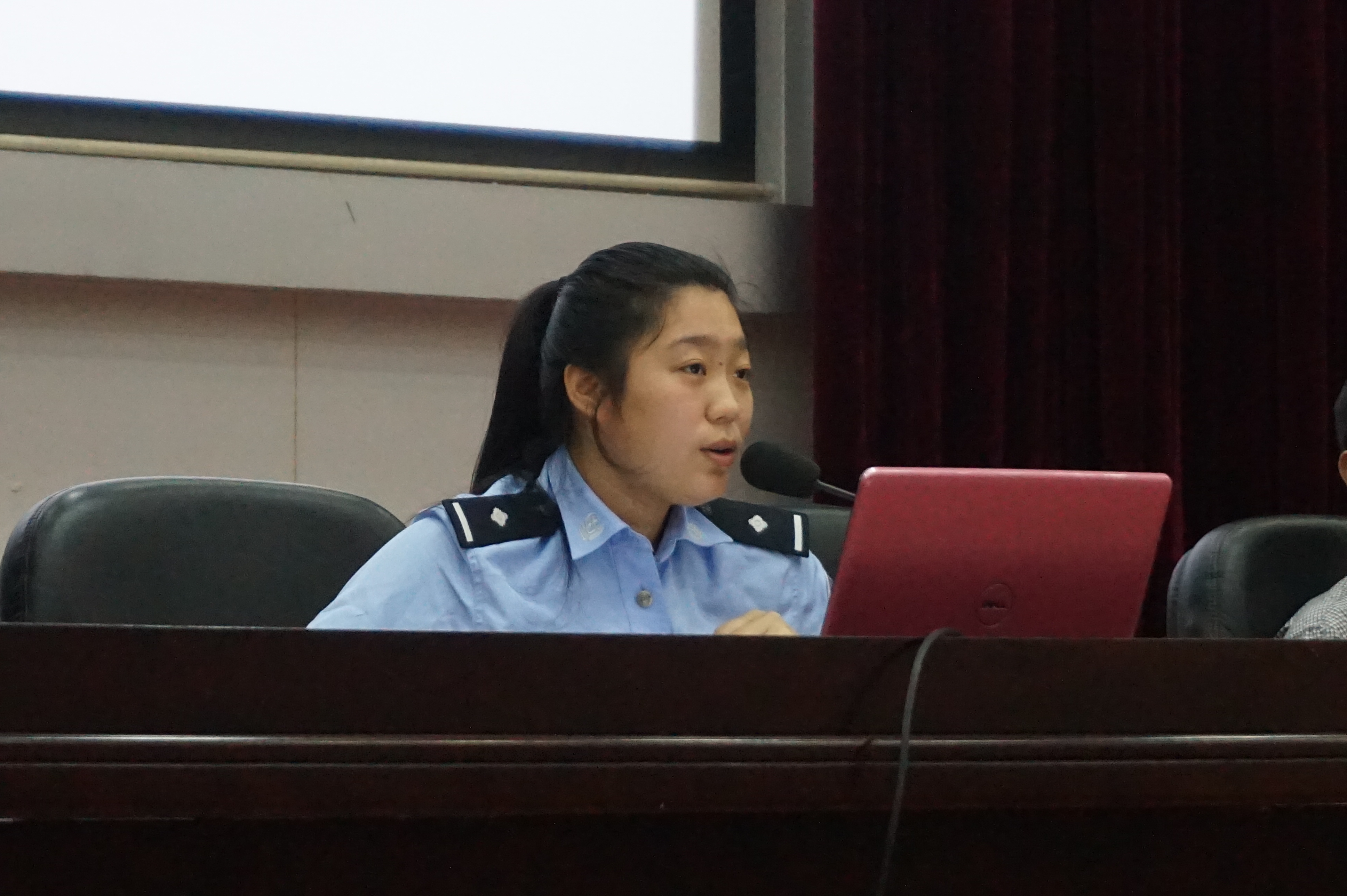典礼后,由荆东派出所吴警官主讲的2016级新生入学安全教育第一课开讲。吴警官亲举校园实例,用真实的数据,鲜活的案例,简洁的语言为新生逐一分析不同类别的安全陷阱,教导新生如何避免掉入安全陷阱,当危险来临时如何应对解决等实用小技能。