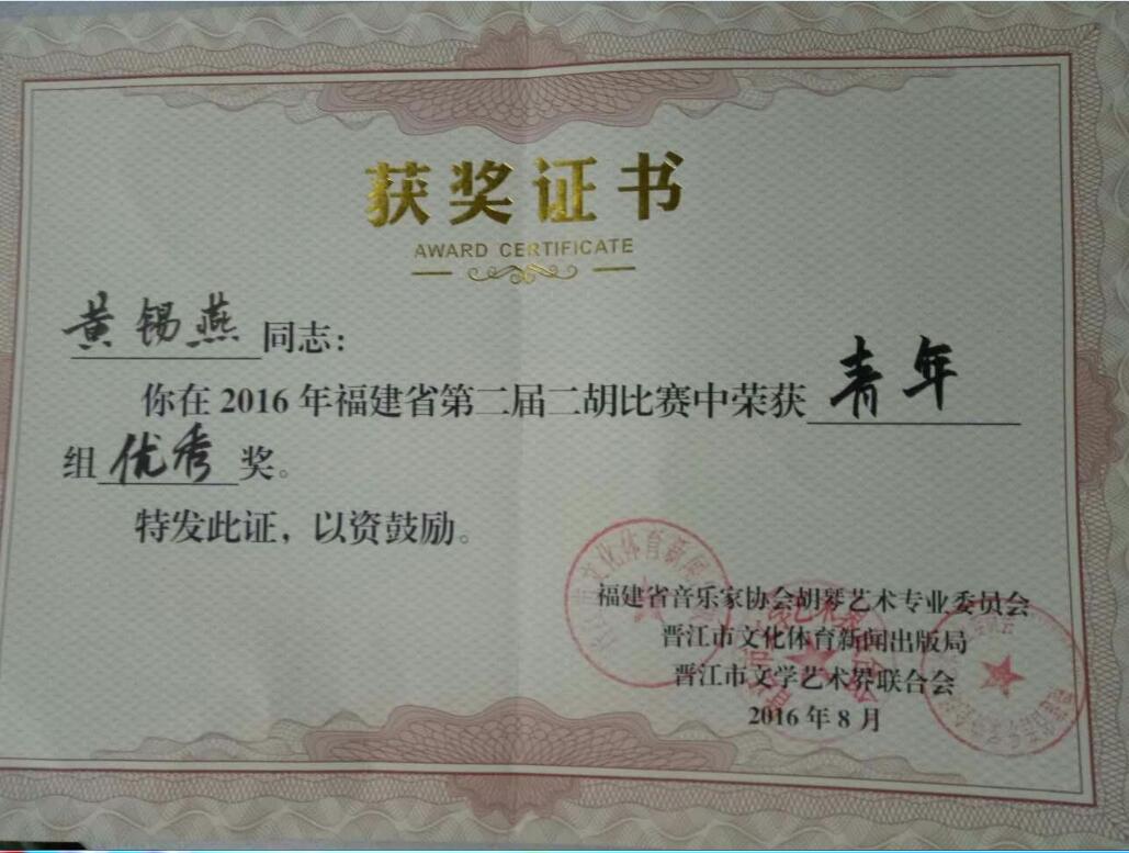 杨应升、郭佳乐参加了专业组的比赛,黄锡燕、林伟清、方若瑶和黄舒琳四名同学参加了青年组的比赛。经过初赛的激烈角逐,杨应升和黄锡燕同学分别获得了专业组和青年组晋级决赛的资格。面对实力强大的省内外选手们,杨应升同学和黄锡燕同学在决赛时刻顶住了压力,完整地表现了自己的音乐,在270多位选手中脱颖而出,分别获得了专业组与青年组的优秀奖。