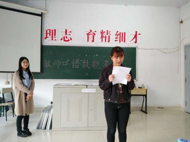 支部党员大会结束后,支部党员教师参与或观摩15级学生“教师口语”第二课堂学分评定工作。