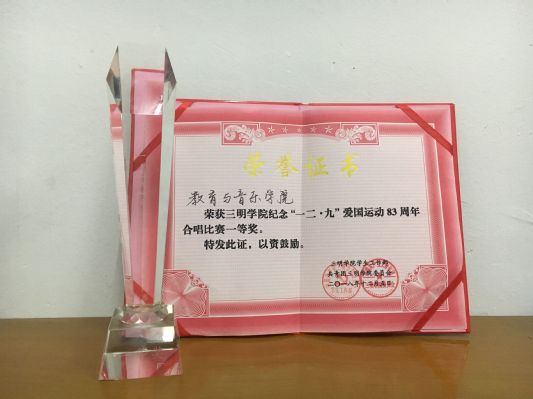 经过一轮激烈的角逐,教育与音乐学院合唱代表队荣获了本次合唱比赛的一等奖。至此,三明学院纪念一二九83周年红歌合唱比赛圆满落幕。