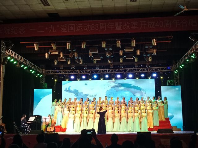 为纪念一二九运动,弘扬伟大的爱国主义精神,激励同学们的爱国主义热情。12月5日晚7:00时在北区礼堂举办了纪念一二九83周年红歌合唱比赛,教育与音乐学院合唱代表队参加了本次赛事。