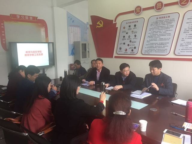 2019年4月3日下午,教育与音乐学院教育学教工党支部在理工一316召开全体党员大会,深入学习领会习近平总书记在学校思政课教师座谈会上的讲话精神,明确党员教师在思政课程与课程思政上应该有什么样的作为。