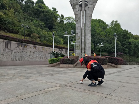 下午两点整,在负责人的带领下,大家来到了麒麟山烈士园。同学们有秩序的在烈士碑前低头鞠躬并默哀,寄托对烈士的哀思。在为烈士们敬上菊花和花圈之后,同学们低吟悼词来表达心中那份对先烈的缅怀之情,表达对先烈们的敬意。同学们自发清扫烈士园,并对墓碑周围的杂草进行清理工作。
