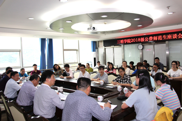 座谈会上,同学们踊跃发言,分享学习心得与见习感悟,畅谈未来期待与职业规划。他们表示,作为全省首批公费师范生,倍感幸运、十分珍惜,定将发扬三明学院“经世致用、自强致胜”的办学精神,在学校的精心培养下,勤奋学习、强化实践、提高修养,努力使自己成长为优秀的学生、将来培养出更优秀的学生。同学们也结合各自的学习和生活实际,提出了一些个人的思想困惑与学习困难。教育与音乐学院负责人简要汇报了2018级公费师范生情况,并同其他教师代表一起,积极回应了同学们提出的问题。
