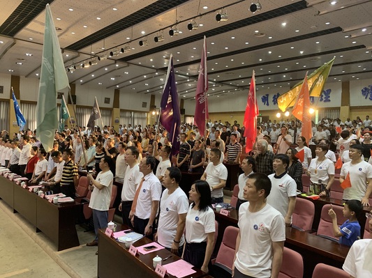 启动仪式前,我院87级音乐科30余名校友挥舞国旗、引吭高唱校歌、班歌,歌声响彻礼堂,瞬间拉动了现场气氛,引得全场阵阵掌声。