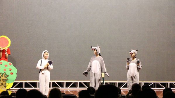 活动中,同学们身穿色彩鲜艳的演出服,头戴漂亮可爱的头饰,以丰富的表情、动作和语言,深深地感染着每一位观众。每个节目从题材的选取、道具的制作、编排的策划和音乐截选,都可以看出同学们的用心。最终,2017级小学教育本科班的《三只小猪》以9.50的高分取得了本次比赛的冠军。