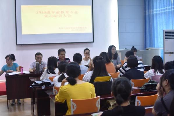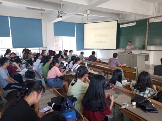 9月4日下午,教育与音乐学院2016级小学教育、学前教学和音乐三个专业分别召开实习动员大会,学院党政领导、系主任、实习带队老师及2016级全体师范专业学生参加会议。