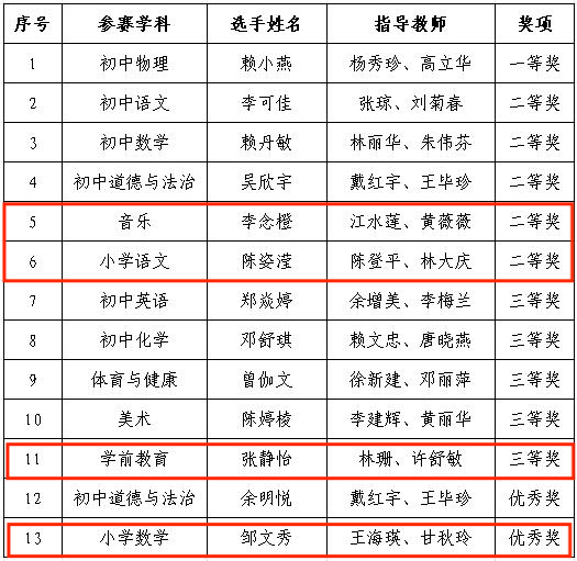 近日,第十二届福建省高校师范生教学技能大赛获奖名单正式公布,我校教育与音乐学院学子凭借扎实的专业素养和出色的教学表现脱颖而出,斩获多项荣誉:李念橙同学荣获音乐学科二等奖,陈姿滢同学荣获小学语文二等奖,张静怡同学荣获学前教育三等奖,邹文秀同学荣获小学数学优秀奖,充分展现了学院师范生培养的丰硕成果。​