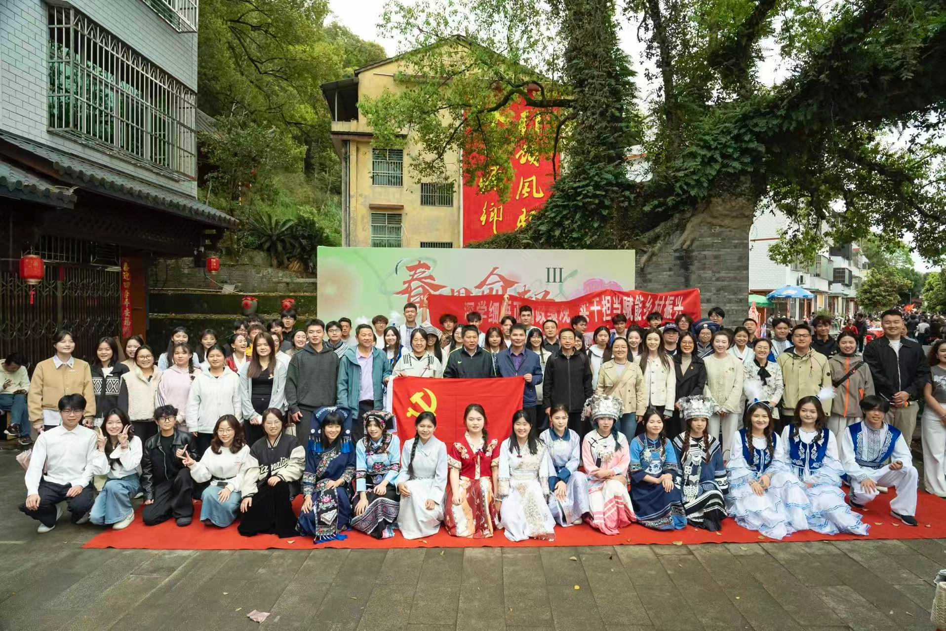 本次活动为俞邦村景区注入多元文化活力,多民族师生同台演出的形式,为景区增添开放包容、民族团结的文化格局,原创文艺演出丰富了景区文化业态,提升了文旅体验品质,获得现场游客的广泛好评与积极反响。活动当天,俞邦村共接待游客近万余人次,举办流水席120桌,带动餐饮、土特产等消费增收显著,有效助力“小吃+文旅”融合发展提质增效,为乡村振兴注入强劲动能。下一步,支部将持续深化党建引领下的校地合作与社区育人机制,常态化开展民族美育实践与乡村文化服务,以高质量党建引领美育事业更好服务地方发展、培育时代新人。