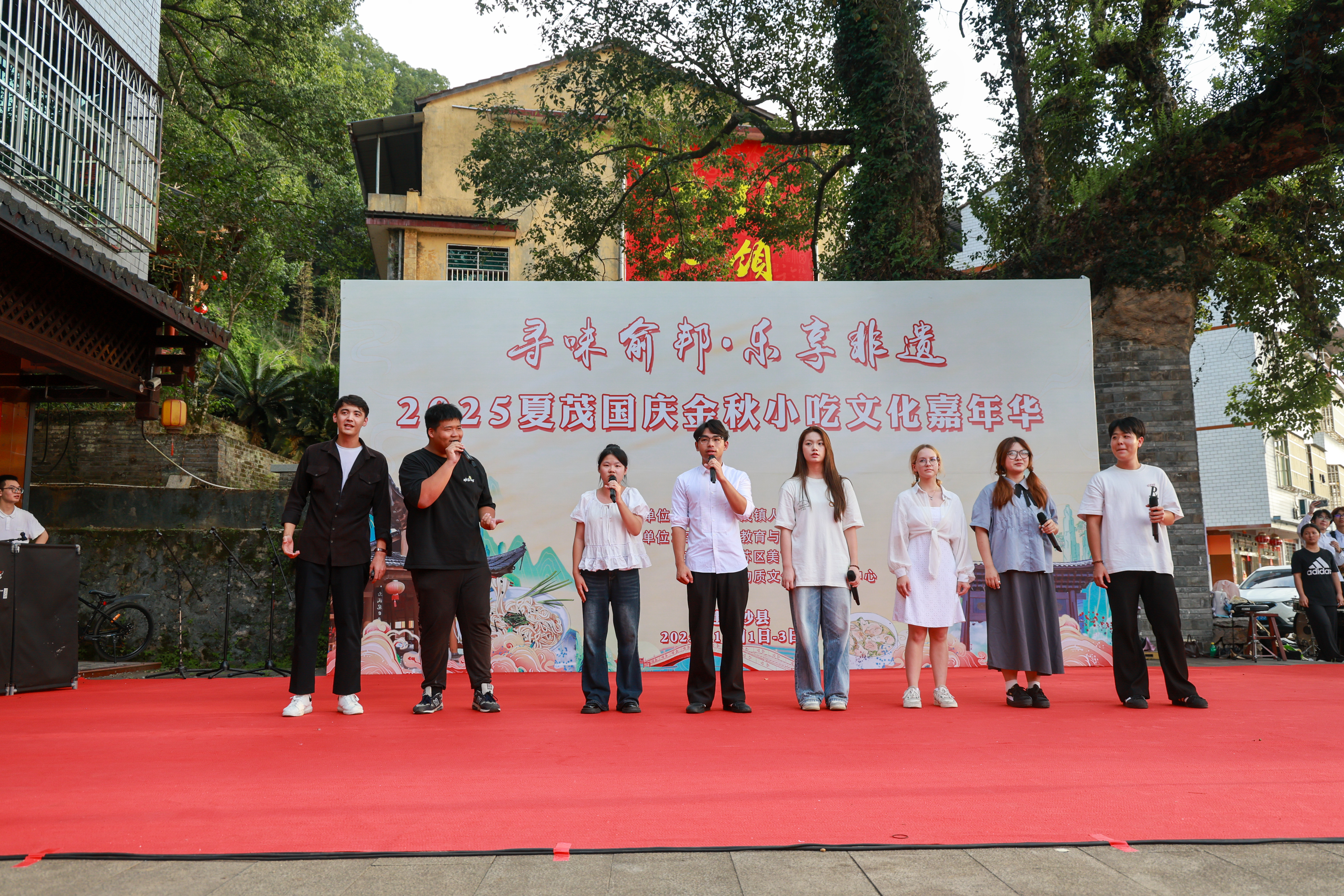 2025年10月1日下午,沙县区夏茂镇俞邦村小吃文化广场掌声阵阵,由夏茂镇人民政府主办,三明学院教育与音乐学院、苏区美育发展学院及区非遗保护中心共同协办的“寻味俞邦・乐享非遗——2025夏茂国庆金秋小吃文化嘉年华”文艺汇演成功举行。活动以文艺为媒,融合非遗文化与多民族艺术,为新中国成立76周年营造浓厚乡村喜庆氛围,成为校地合作助推乡村振兴的生动实践。