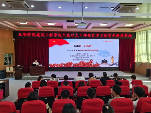 为深入开展党史学习教育,5月26日下午,建筑工程学院举办党史学习教育专题读书班,邀请福建省委党史研究和地方志编纂办公室党史研究一处副处长、厦门大学哲学博士曾永志作专题报告。报告由院党委书记陆发信主持,院全体教师、学生党员和入党积极分子200余人参加学习。