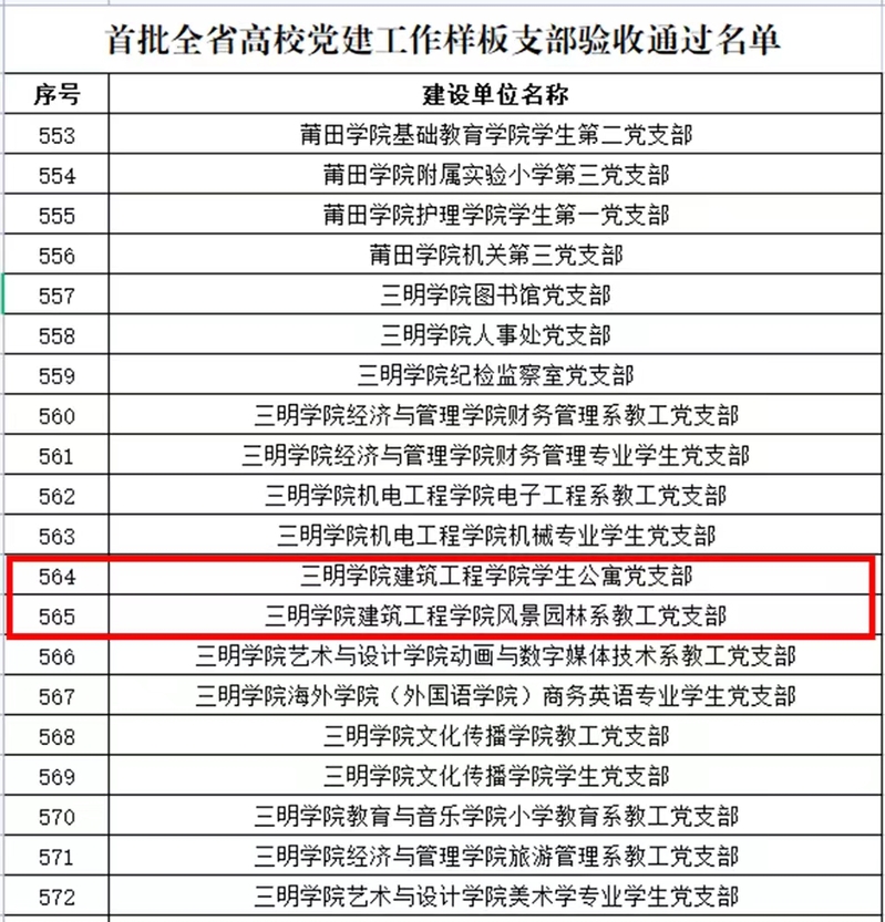 日前,省委教育工委公布首批全省高校党建工作标杆院系、样板支部验收通过名单,建筑工程学院党委、风景园林系教工党支部、学生公寓党支部顺利通过验收。