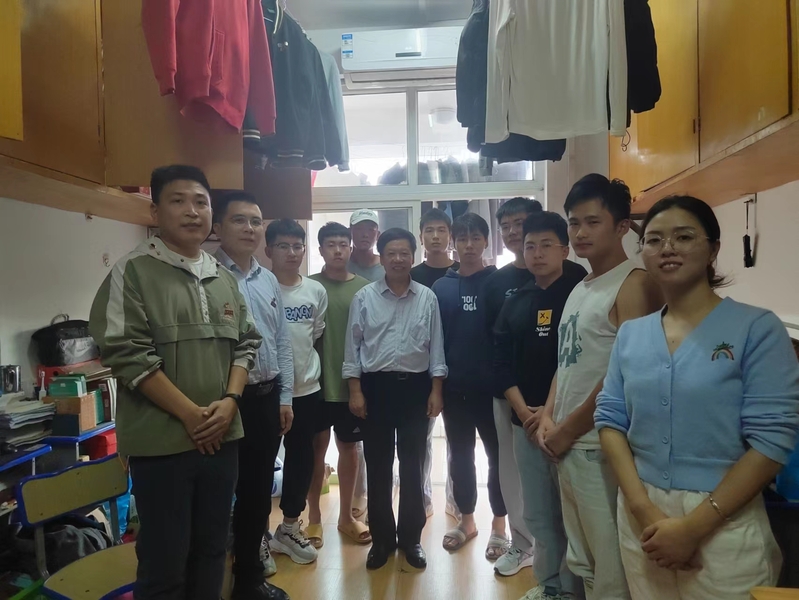 为积极推进我院“一站式”社区管理模式建设,充分发挥三全育人优势,精准对接学生实际需求,畅通与学生的沟通渠道,11月9日下午,谢明松副校长走访我院荷花苑2号学生宿舍,院党委书记、辅导员陪同参加。