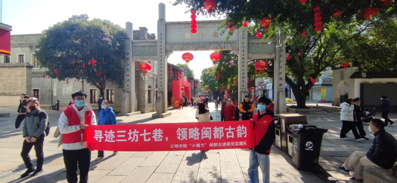 为追寻习近平总书记足迹,深入学习宣传贯彻习近平总书记来闽考察重要讲话精神与习近平总书记关于历史文化遗产保护的重要论述。寒假期间,我院“小魔方”闽都古迹探究实践队前往福州三坊七巷历史文化街区开展了“寻迹三坊七巷,领略闽都古韵”的社会实践活动。
