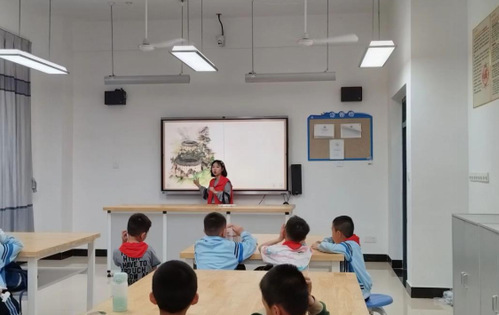 课堂上,队员们通过生动的讲解和丰富的图片资料,向小朋友展示了福建土楼的建筑风格、历史背景以及文化内涵。他们讲述了土楼是如何历经千年而屹立不倒,如何成为福建人民团结一心、守望互助的象征。通过队员们的讲解,同学们不但了解了传统建筑中承载的建筑智慧,更进一步认识到客家文化中蕴含的中华优秀传统文化价值。