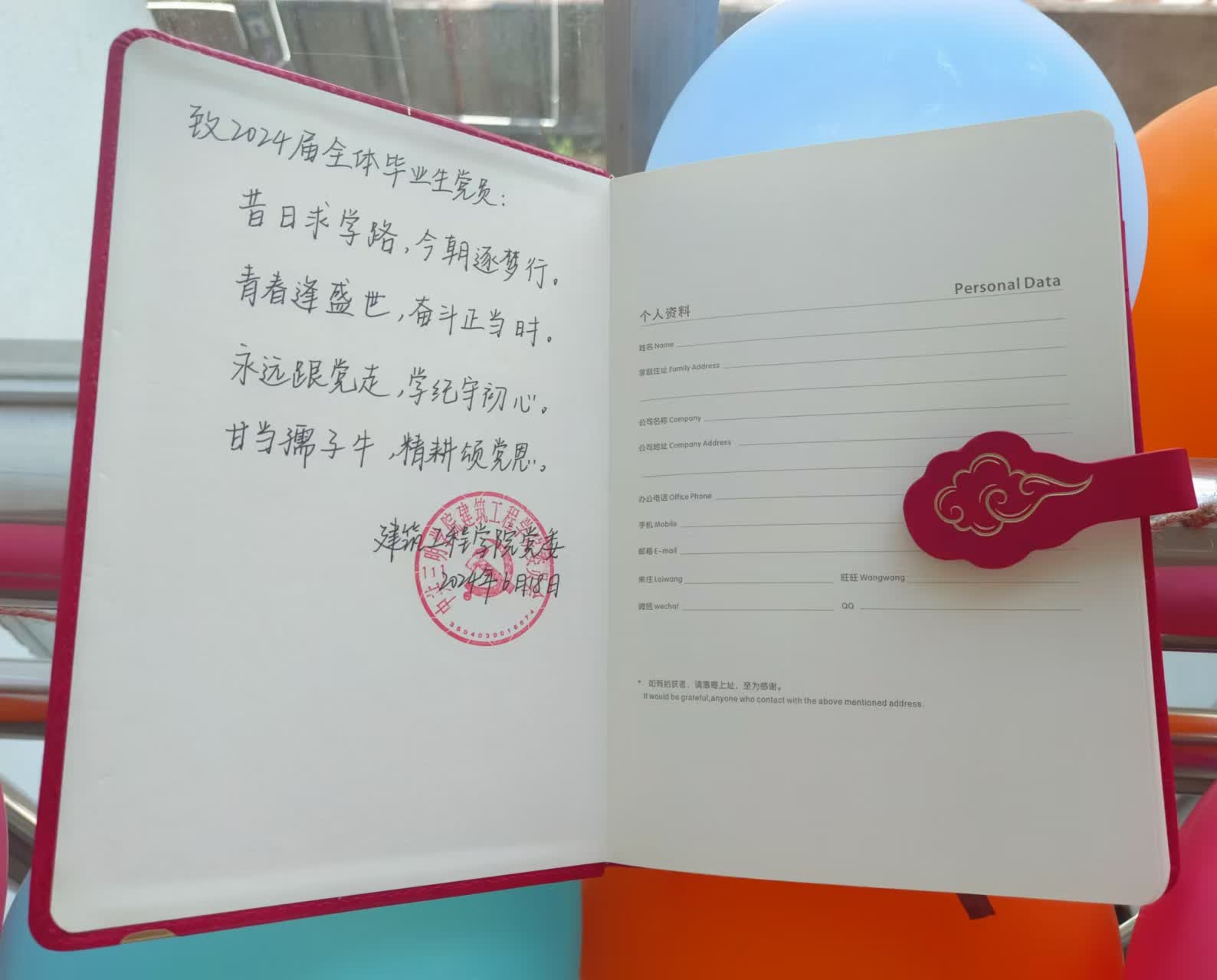 活动中,全体教师代表为毕业生党员赠与具有美好寓意的向日葵花束和学弟学妹亲笔撰写祝福语的笔记本,表达对全体毕业生党员的忠心祝愿,希望全体党员在新的征程上不忘初心,阔步向前,行稳致远。毕业生党员也纷纷自发为老师们献上花束,把对老师的感恩之情融入到献花寄语中,用最质朴的行动表达着对老师最真挚的感谢和祝福。
