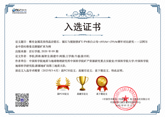 近日,中国知网《学术精要数据库》发布2011年以来的高影响力论文。我院教师李杭副教授于2020年9月发表在岩石学报的论文《稀有金属花岗伟晶岩锆石、锡石与铌钽铁矿U-Pb和白云母~(40)Ar/~(39)Ar测年对比研究——以阿尔金中段吐格曼北锂铍矿床为例》,入选中国知网学术精要(2025年3-4月)高PCSI论文、高被引论文、高下载论文。