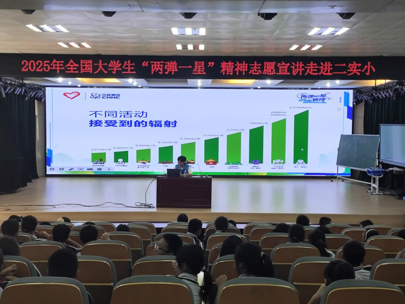 宣讲中,宣讲员结合《部落冲突》游戏,讲解核电站的四层安全防护体系,并通过视频展示核电站内部结构与应急流程,让孩子们直观了解其安全性。谈及历史核事故,宣讲员分析称,切尔诺贝利事故因操作失误且无安全壳导致严重后果,美国三哩岛事故因有防护影响较小。目前我国核电站采用第三代技术,选址地质稳固、气象条件好,且运行监管严格,安全性有保障。最后,宣讲员表示核能清洁高效,除发电外还可用于供暖、医学抗癌、农业水果保鲜,只要规范管理就能发挥重要作用。