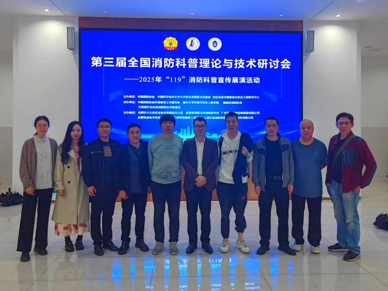 在第34个全国消防日到来之际,消防科技创新与科普宣传工作备受社会关注。11月8日-9日,我院协办了在福州举办的“第一届消防科技前沿国际研讨会”并参与第三届全国消防科普理论与技术研讨会暨2025年“119”消防科普宣传与演练活动,副校长陈日清带队参会,我院师生代表参加活动。