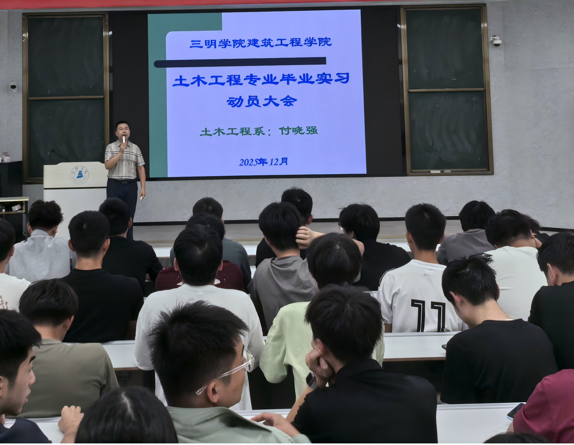 为确保2026届毕业实习工作的顺利开展,土木工程系于12月3日在博学楼223教室召开了2026届毕业实习动员大会。土木工程专业2026届全体毕业生参加本次动员大会,会议由系主任付晓强教授主持。