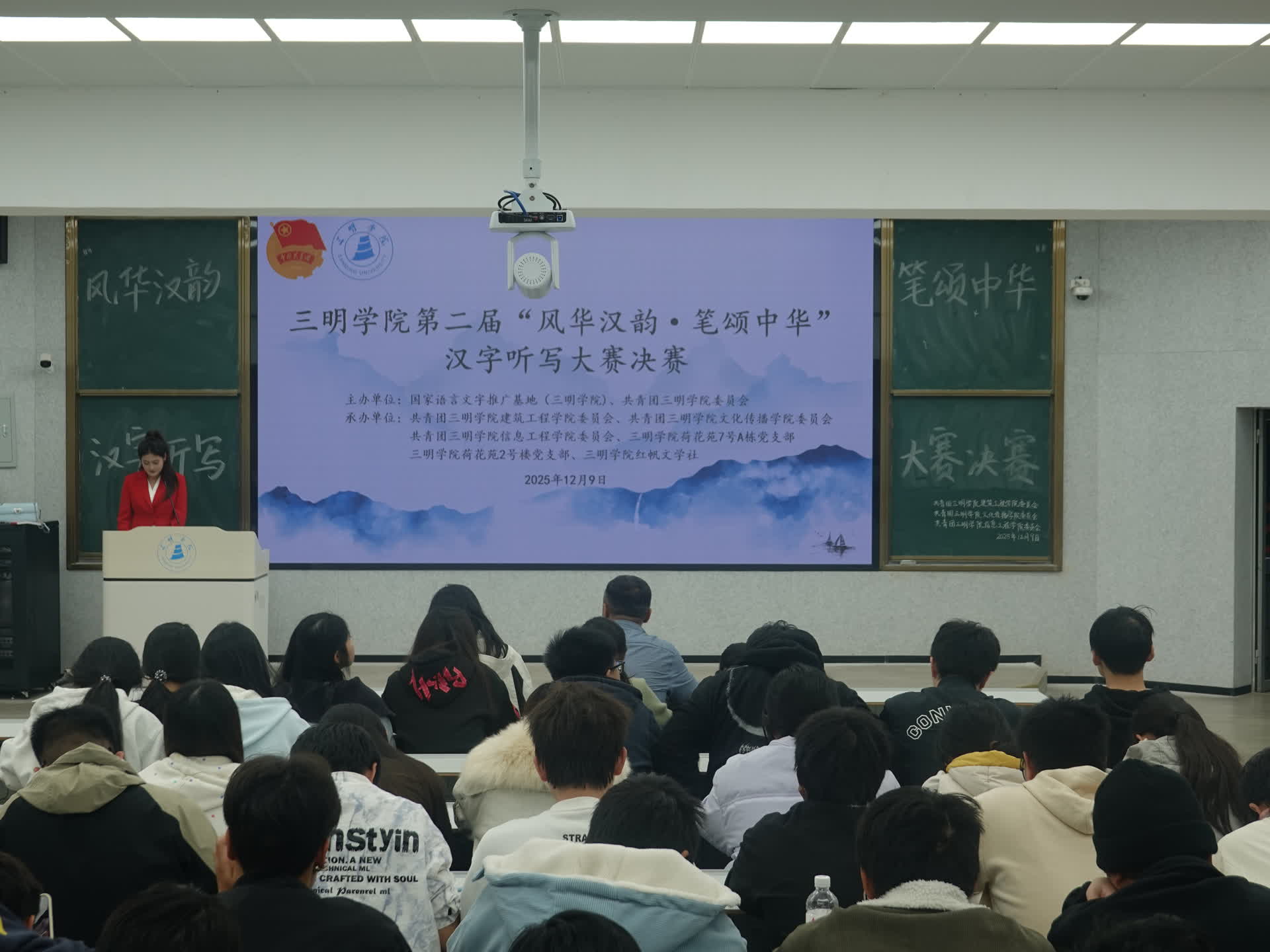 11月22日至12月9日,第二届“风华汉韵・笔颂中华”汉字听写大赛在三明学院顺利举办。本次大赛由国家语言文字推广基地(三明学院)、共青团三明学院委员会主办,共青团三明学院建筑工程学院委员会、共青团三明学院文化传播学院委员会、共青团三明学院信息工程学院委员会、三明学院荷花苑7号A栋党支部、三明学院荷花苑2号楼党支部及三明学院红帆文学社联合承办,为全校学子搭建起一个感受汉字魅力、传承中华文脉的优质平台。