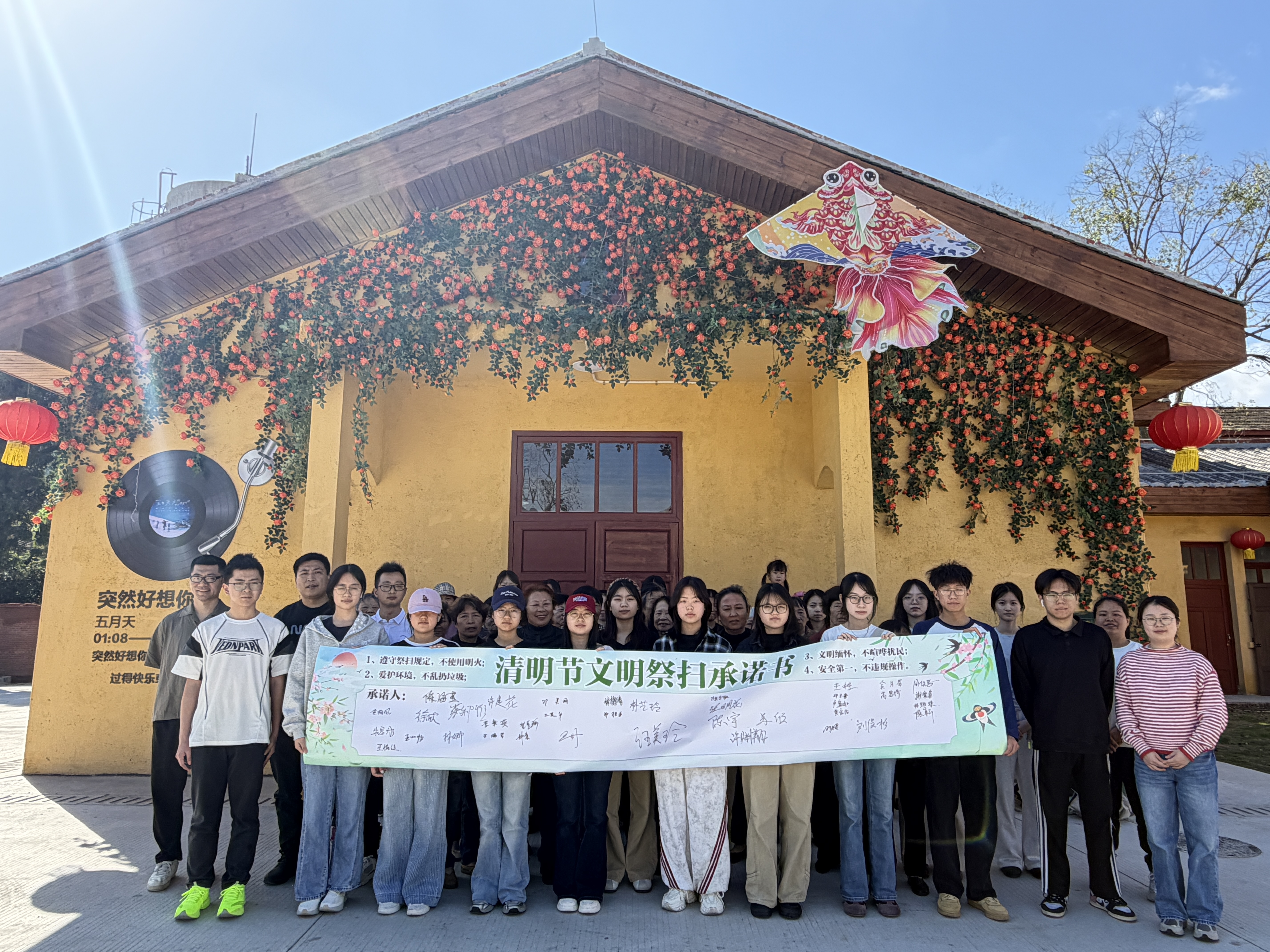 活动首先进行红色宣讲环节,由我院组建的三明学院红色建筑队指导教师徐欣博士和团队代表深情讲述了革命先辈的英勇故事,带领在场党员、团员和群众重温峥嵘岁月。通过党团班联动,团员代表与党员一起聆听、共同感悟,在集体学习中赓续红色血脉,增强家国情怀。随后进入文明倡议与签名环节。学生代表宣读《文明祭扫倡议书》,倡导鲜花祭扫、网络祭扫等绿色方式。在党员带动、团员响应的良好氛围下,全体人员共同在“文明祭扫承诺长卷”上郑重签名,以实际行动践行移风易俗,展现了党团班同心同行的精神风貌。